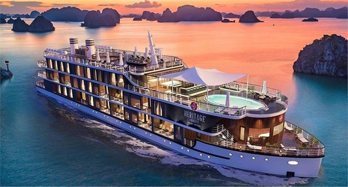 LuxuryLuxury boutique cruise inspired by Vietnamese heritage, ideal for Halong Bay and Lan Ha Bay journeys.