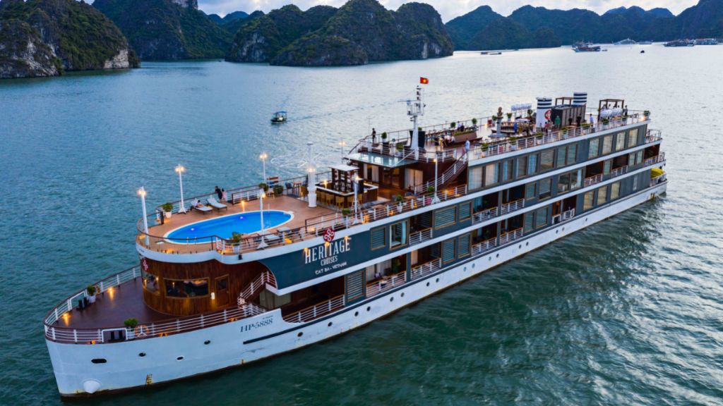 LuxuryLuxury boutique cruise inspired by Vietnamese heritage, ideal for Halong Bay and Lan Ha Bay journeys.